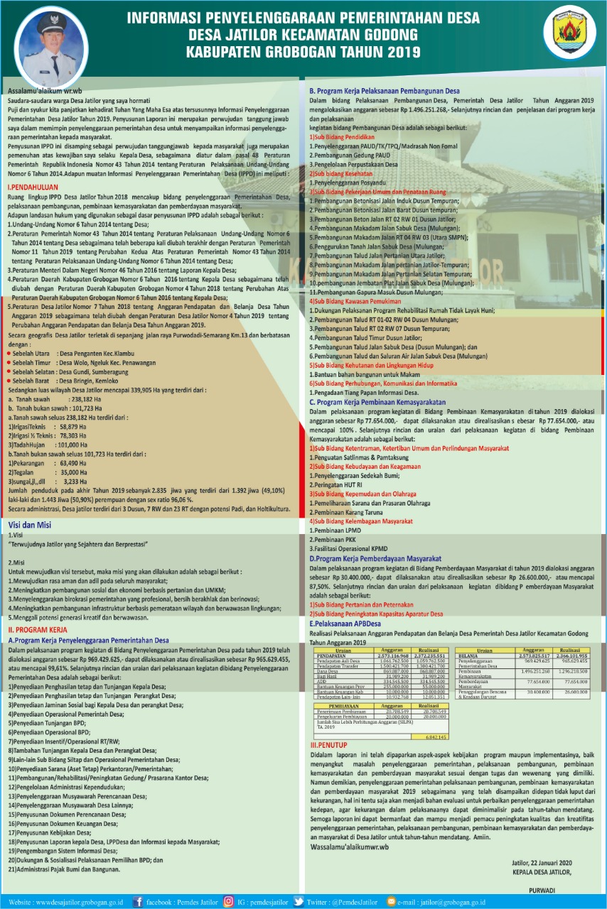 Informasi Penyelenggaraan Pemerintahan Desa Jatilor Tahun 2019